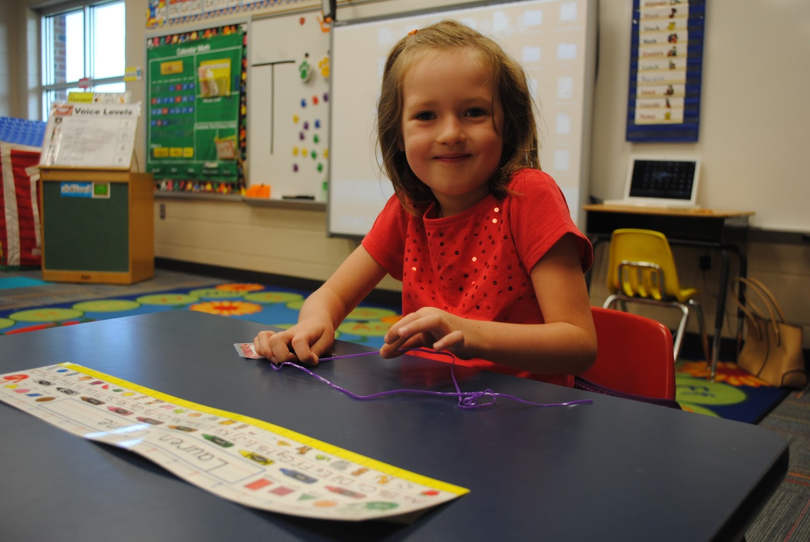 But on the way into Kindergarten, she held on extra tight. She squeezed out a secret-coded I love you! and tried to smile. She sat down at her table and looked at the world.